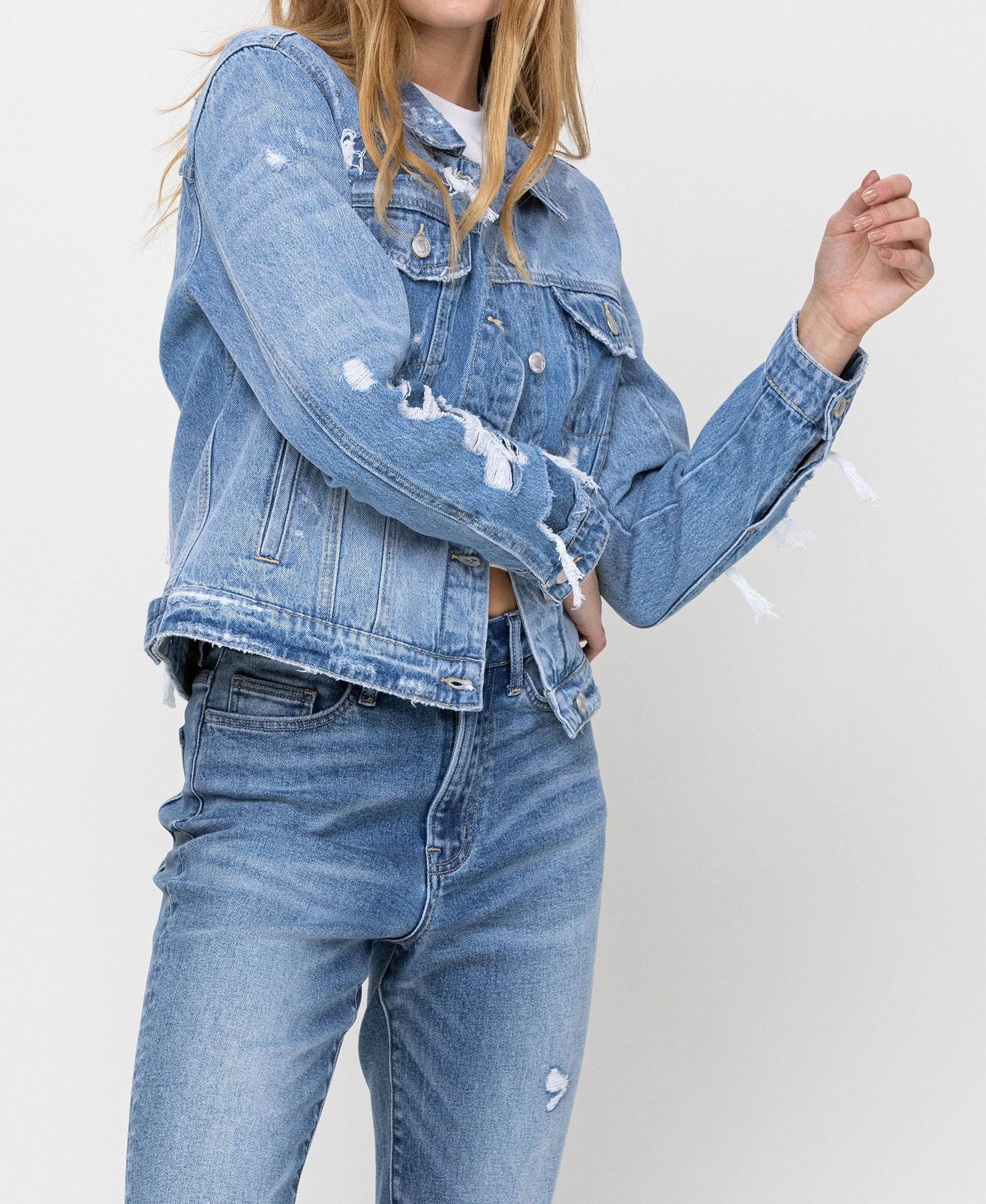 -70%Blue Soul - Distressed Classic Denim Jacket—