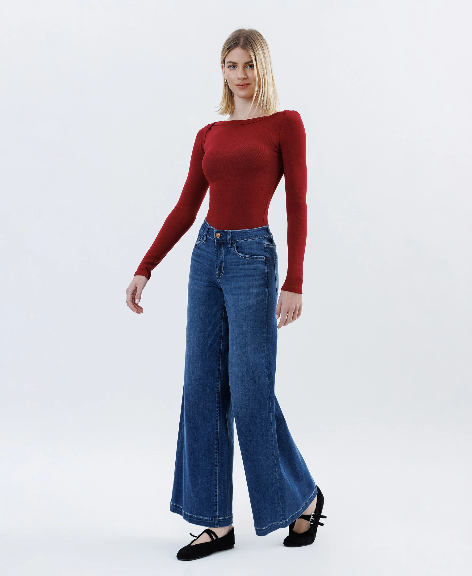 These Humane jeans are anything but ordinary! Made with comfort stretch denim and a mid rise waist, they provide a flattering fit that will keep you feeling comfortable all day long. The finished hem and full length design add a touch of sophistication, making these palazzo jeans a must-have for any wardrobe. Say goodbye to uncomfortable jeans and hello to effortless style!