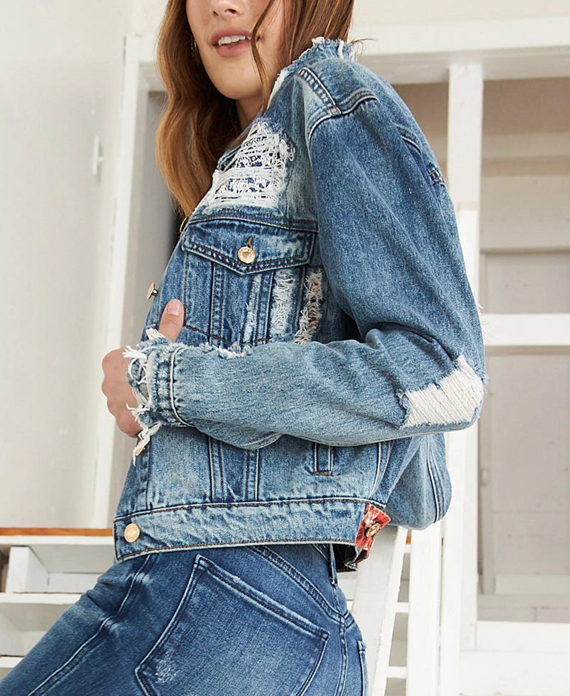 Moving Silence - Distressed Patched Classic Fit Denim Jacket
