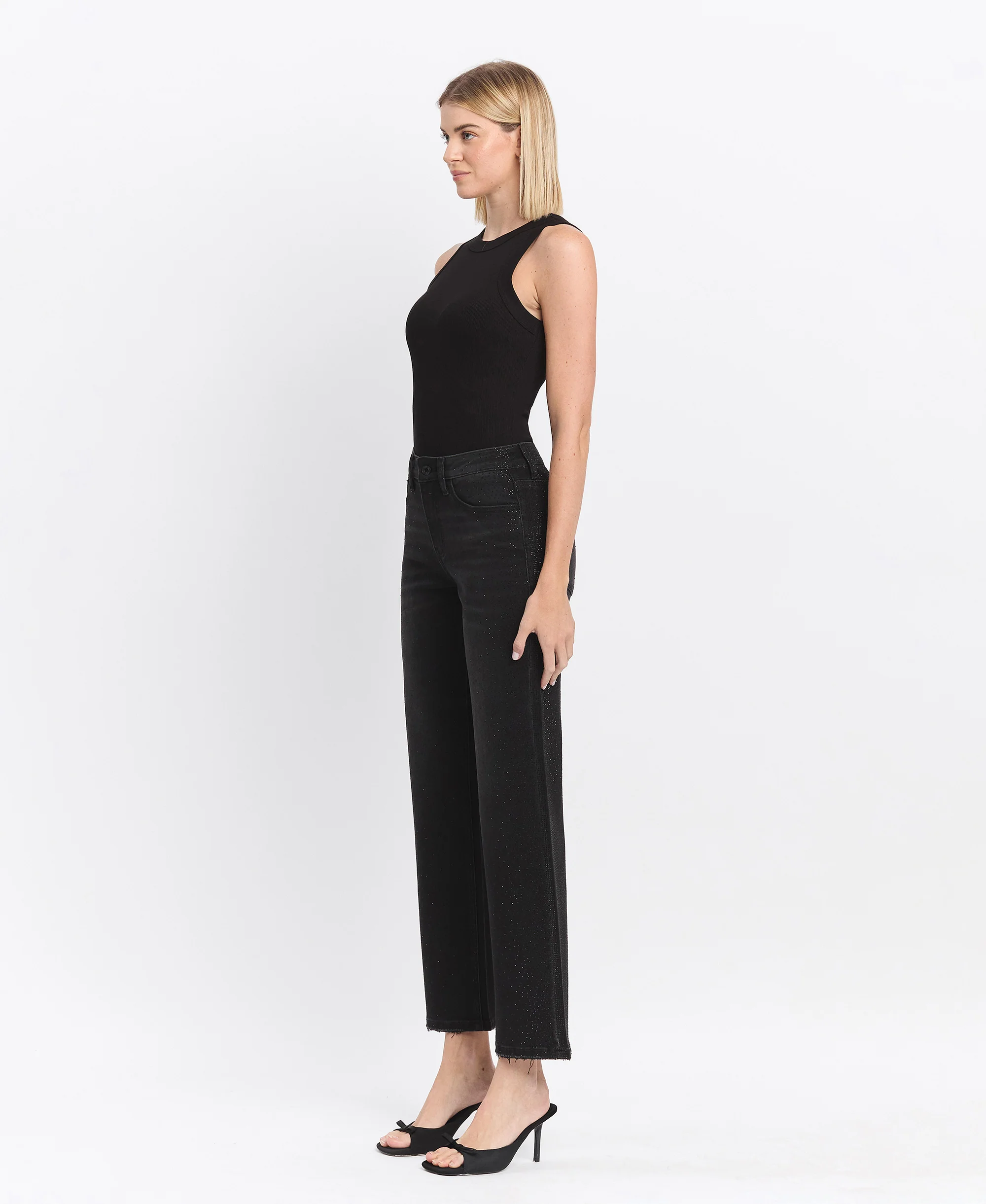 Openness - High Rise Rhinestone Slim Wide Leg Jeans