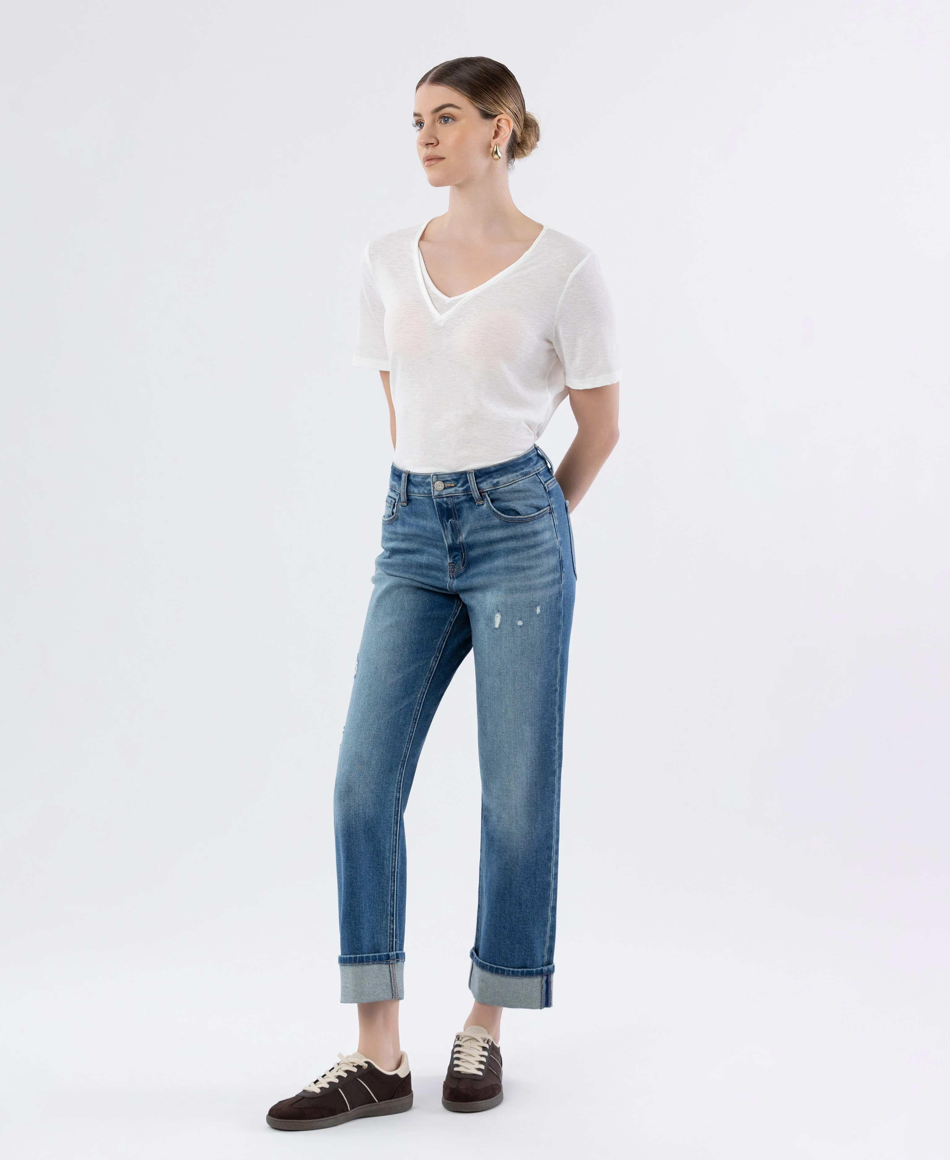 Sleek - High Rise Cuffed Straight Jeans