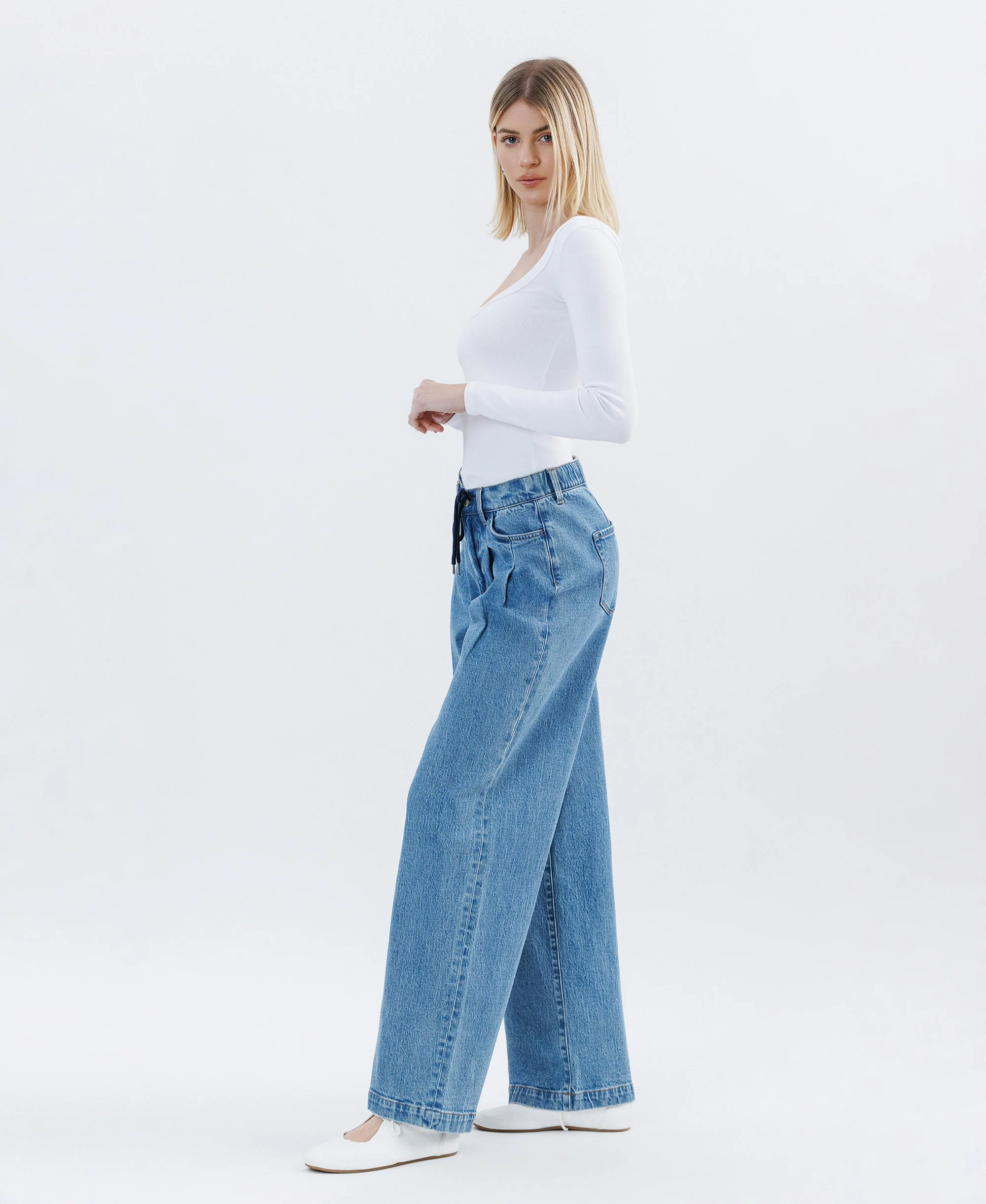 Unabashed - Super High Rise Pleated Drawstring Wide Leg Jeans