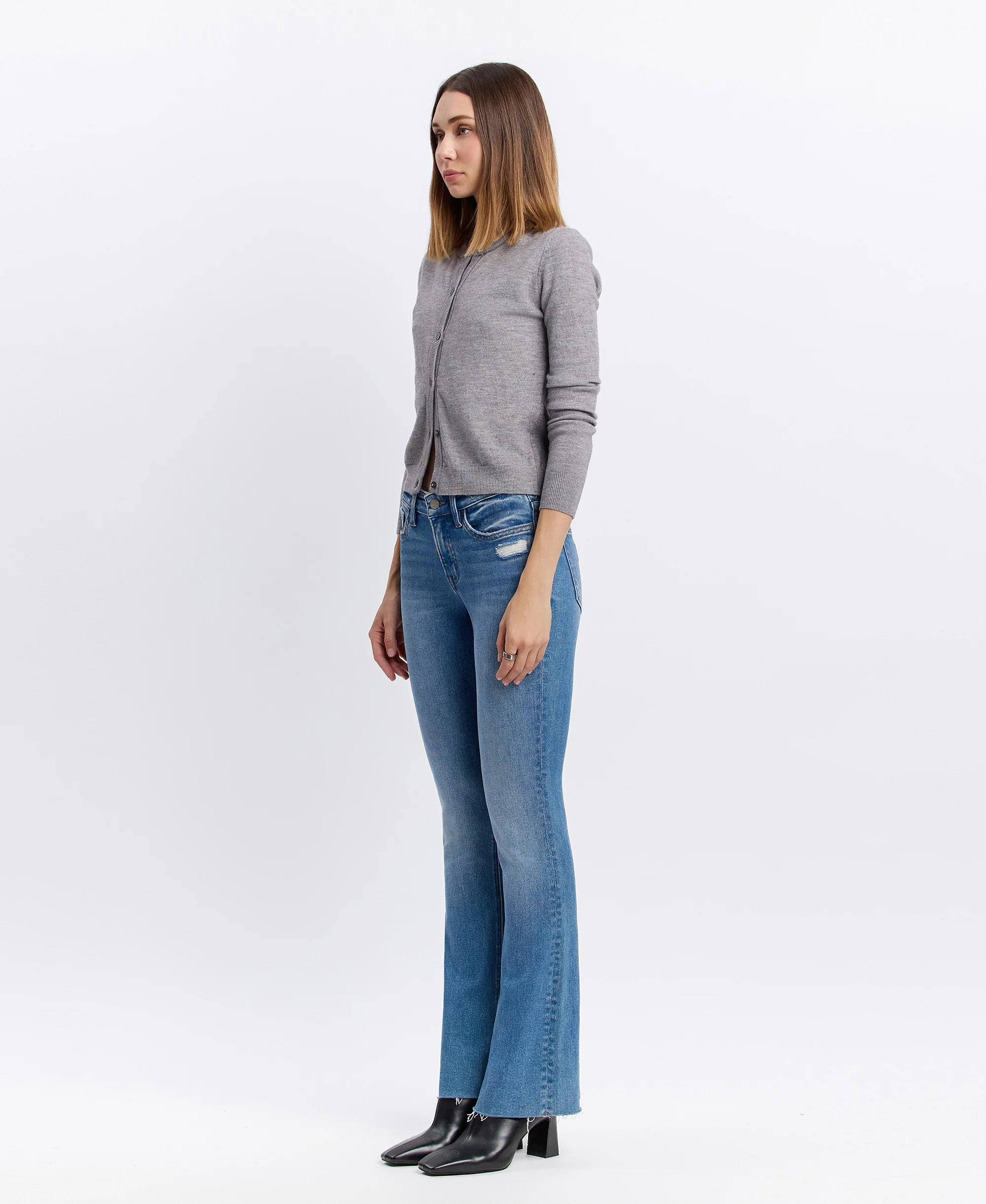 Well Rounded - Mid Rise Raw Hem Ankle Bootcut Jeans